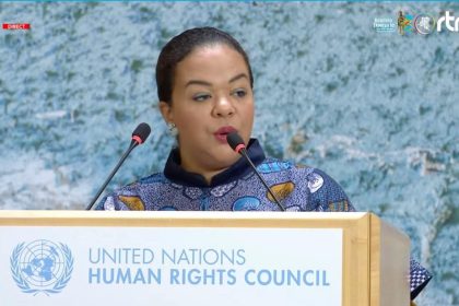 L’enfarineuse, ministre d’État aux Affaires étrangères, Thérèse KAYIKWAMBA WAGNER noyée sur le pupitre, à la 61ᵉ Session du Conseil des Droits de l’homme à Genève, a dénoncé « les violatio...