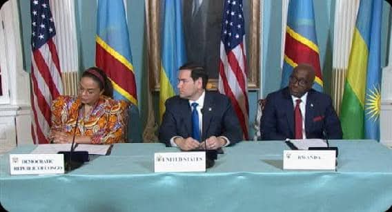 Visage triste, avalant sa couleuvre, Thérèse KAYIKWAMBA WAGNER avait signé le vendredi 27 juin 2025 à Washington DC, le fameux accord de paix à Washington DC en présence de Marco Rubio, Secrétaire d’État américain. C’est le premier accord de la vente de MAMA KONGO. Thérèse KAYIKWAMBA WAGNER a signé la dépossession de MAMA KONGO aux Kongolais. Elle a signé le piétinement de la SOUVERAINETÉ de MAMA KONGO.